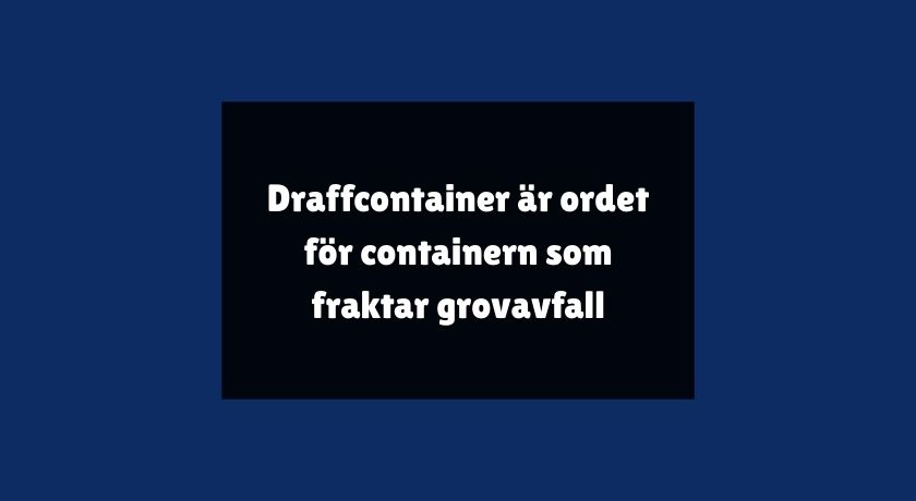 När du säger draffcontainer blir det helt klart vilken typ av container som avses. Det är en specifik och korrekt term som ersätter mer allmänna uttryck som ”avfallscontainer” eller ”sopcontainer”.